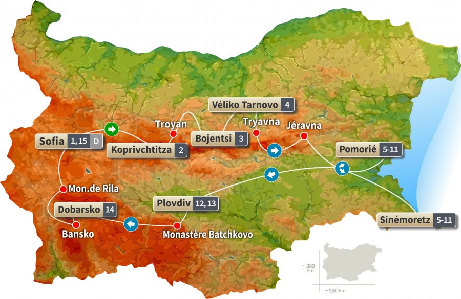 Ce circuit permet d'obtenir une image complète, riche et contrastée de la Bulgarie, tout en obéissant à un rythme de voyage détendu.